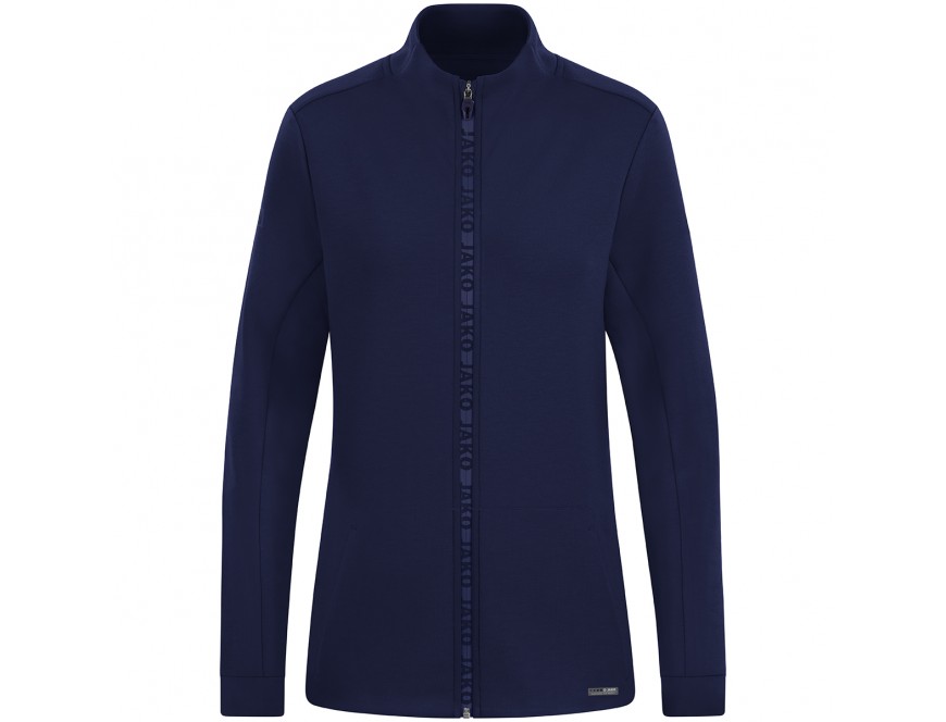 Žensko jopico odlikujejo stranski žepi s skrito zadrgo ter oznaka logotipa JAKO, ki se razprostira po celotni zadrgi.