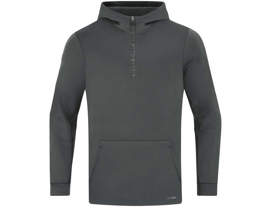 Zip hoodie odlikujejo stranski žepi s skrito zadrgo, kapuca ter oznaka logotipa JAKO, ki se razprostira po sprednji 3/4 zadrgi.