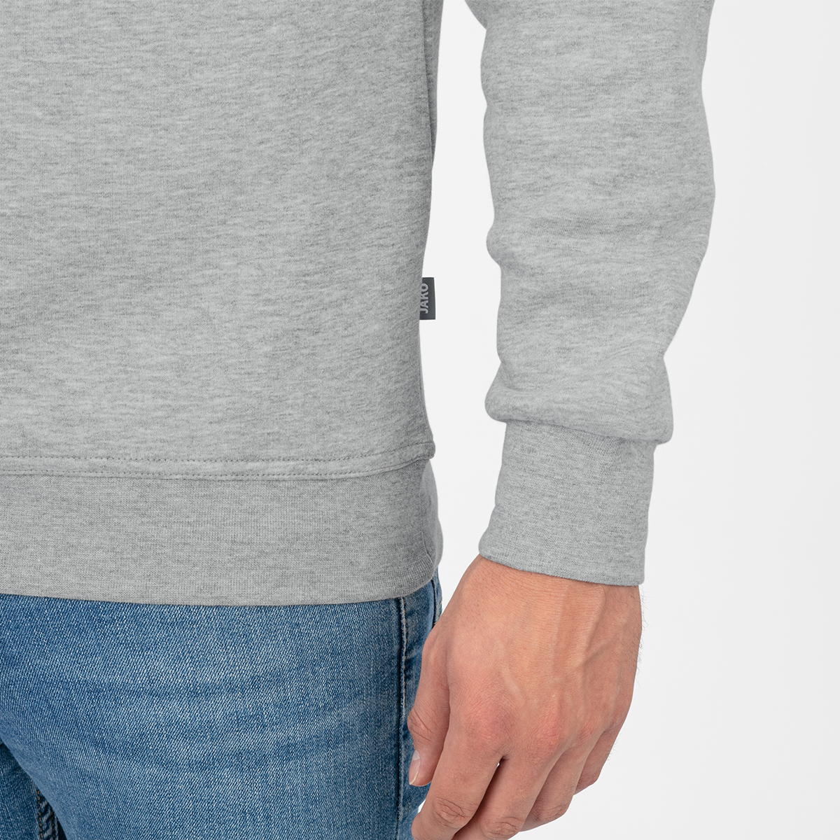 Majhna etiketa z logotipom JAKO na levi strani ziptopa omogoča enostavno in estetsko personalizacijo z logotipom vašega podjetja, če ga uporabljate kot službeno oblačilo.